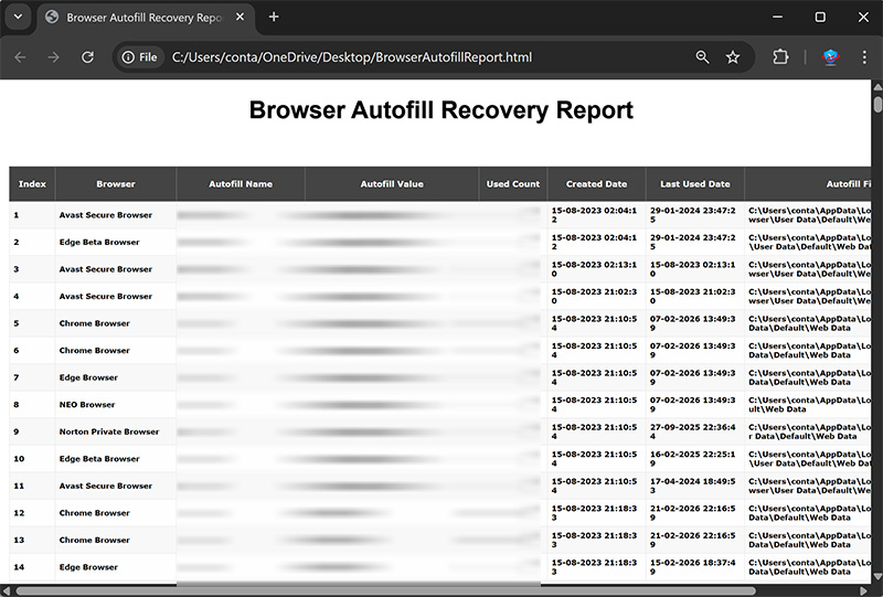 - Autofill recovery is supported from all 130+ latest browsers. Download Trial Version to verify.