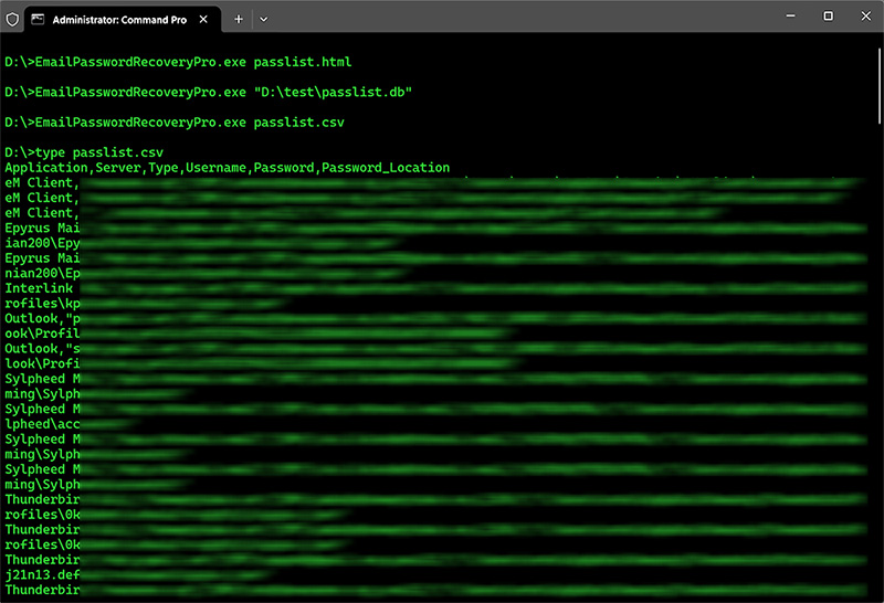 EmailPasswordRecoveryPro.exe "c:\my reports\report.csv"