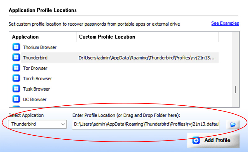 This is one of the unique benefits of XenArmor Email Password Recovery Pro. It helps you to specify the custom profile paths for each supported application.