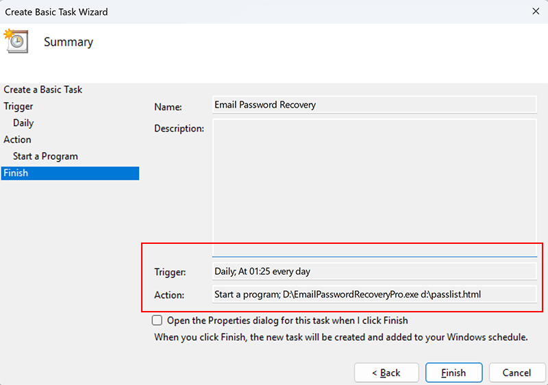 4) Click “Finish” to complete the setup and schedule automatic password recovery.